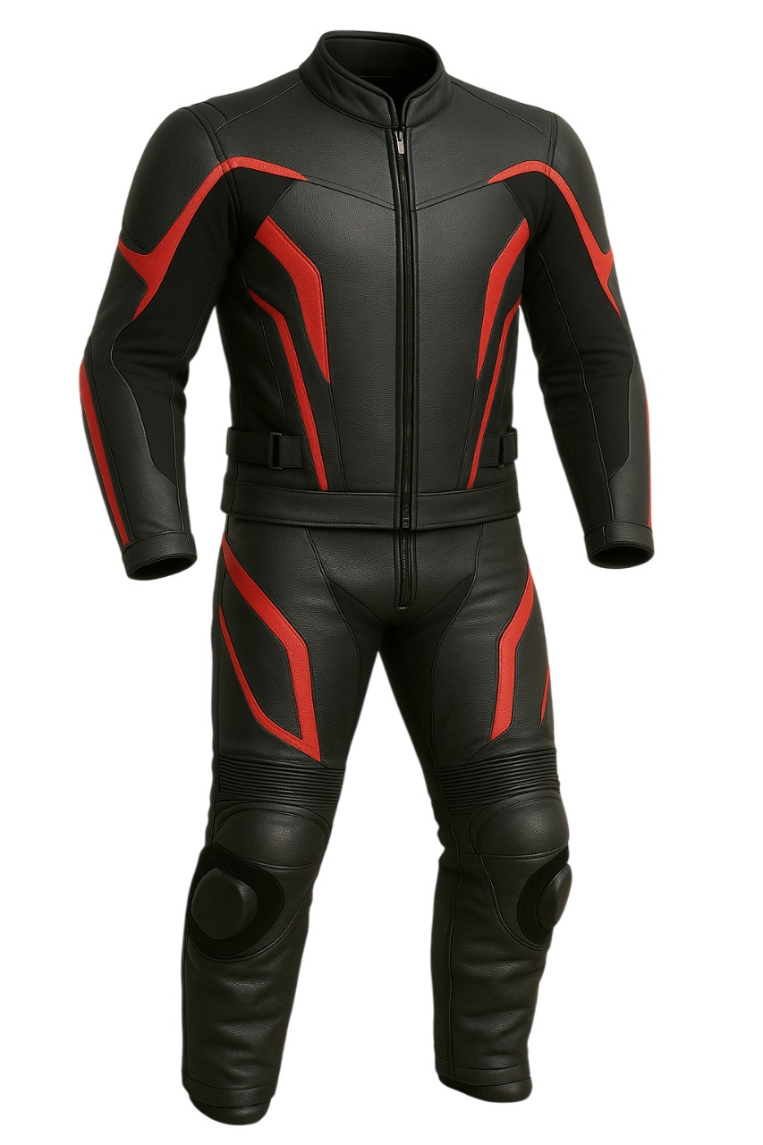 A sleek, race-tuned one-piece built for pace and protection. Vector RS wraps you in premium leather with CE armor, stretch panels, and replaceable knee sliders—finished in stealth black with red speed graphics.
