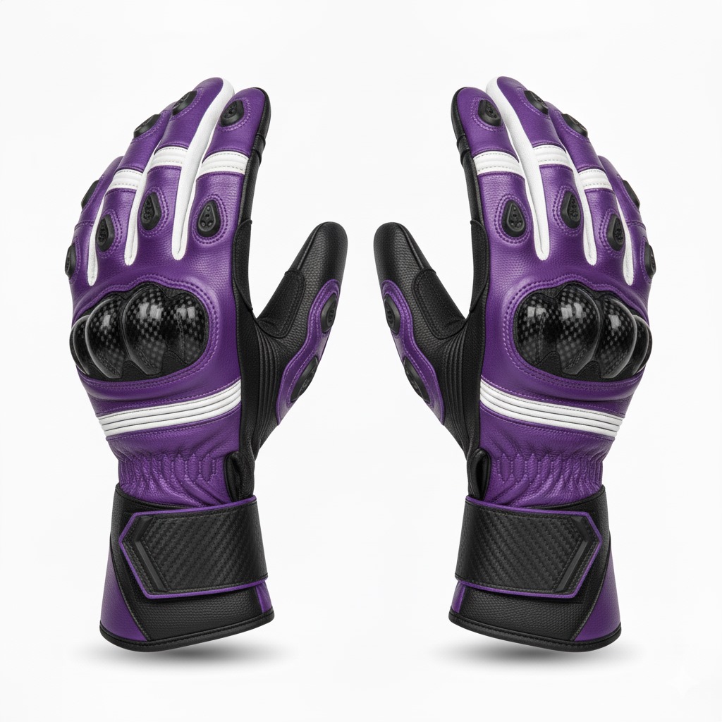 Ride with confidence and elevate your gear with the Phantom Ride Motorcycle Gloves. Crafted for serious riders, these gloves blend premium materials, advanced protection, and a sleek purple-and-black design that makes a statement on and off the road.